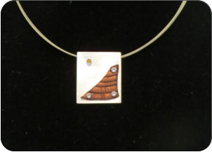 Zilveren hanger met een bruin accent van leer en een citrien steen.