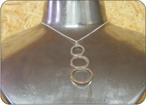 Zilveren hanger met 3 schoteltjes in verschillende maten. Inclusief gourmet coliier van 42 of 45 cm.