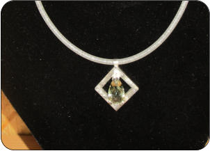 Zilveren hanger met een groene amethist; facetgeslepen. Inclusief rubberen spang.