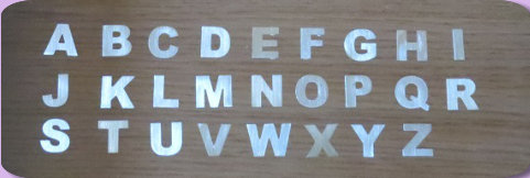 Op de bovenstaande foto ziet u een strakkere letter die gebruikt wordt om manchtknopen meet te maken. De letters op de foto geven de werkelijke letters weer zoals uw manchetknoop eruit komt te zien bij dit type schrijfletter. De letters hebben een hoogte van ongeveer 1,5 centimeter.De keus is aan u!!